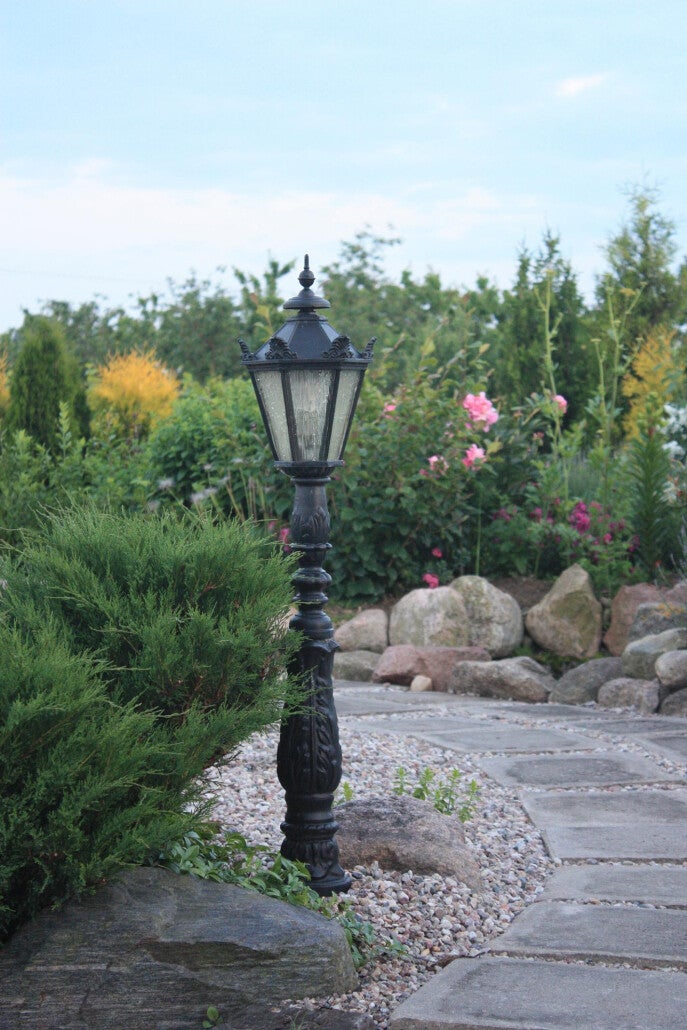 Produktbeschreibung: Klassische Außenlaterne aus Gusseisen H 123 cm