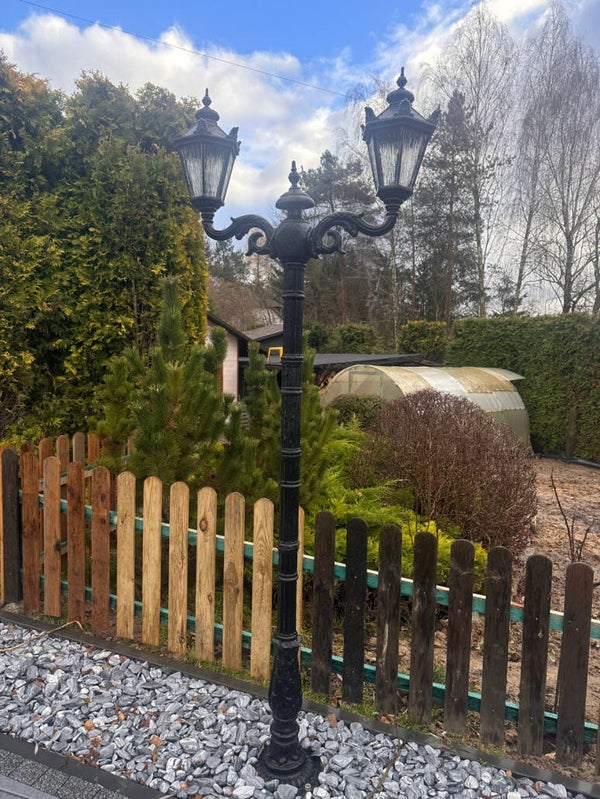 Zweiarmige Außenlaterne aus Gusseisen H 240 cm