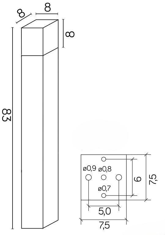 Diese moderne Pollerleuchte überzeugt durch ihr klares, rechteckiges Design und eine Höhe von 83 cm, die für eine effektive und zugleich dezente Außenbeleuchtung sorgt. Die schlichte Formensprache macht die Leuchte zu einer idealen Ergänzung für zeitgemäße Architektur und moderne Außenbereiche.