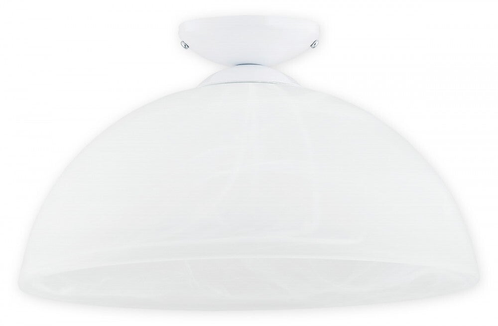 Große Deckenleuchte mit weißem Alabasterglas, die für eine weiche und gleichmäßige Ausleuchtung sorgt. Das zeitlose Design eignet sich ideal für Wohnräume oder Flure.