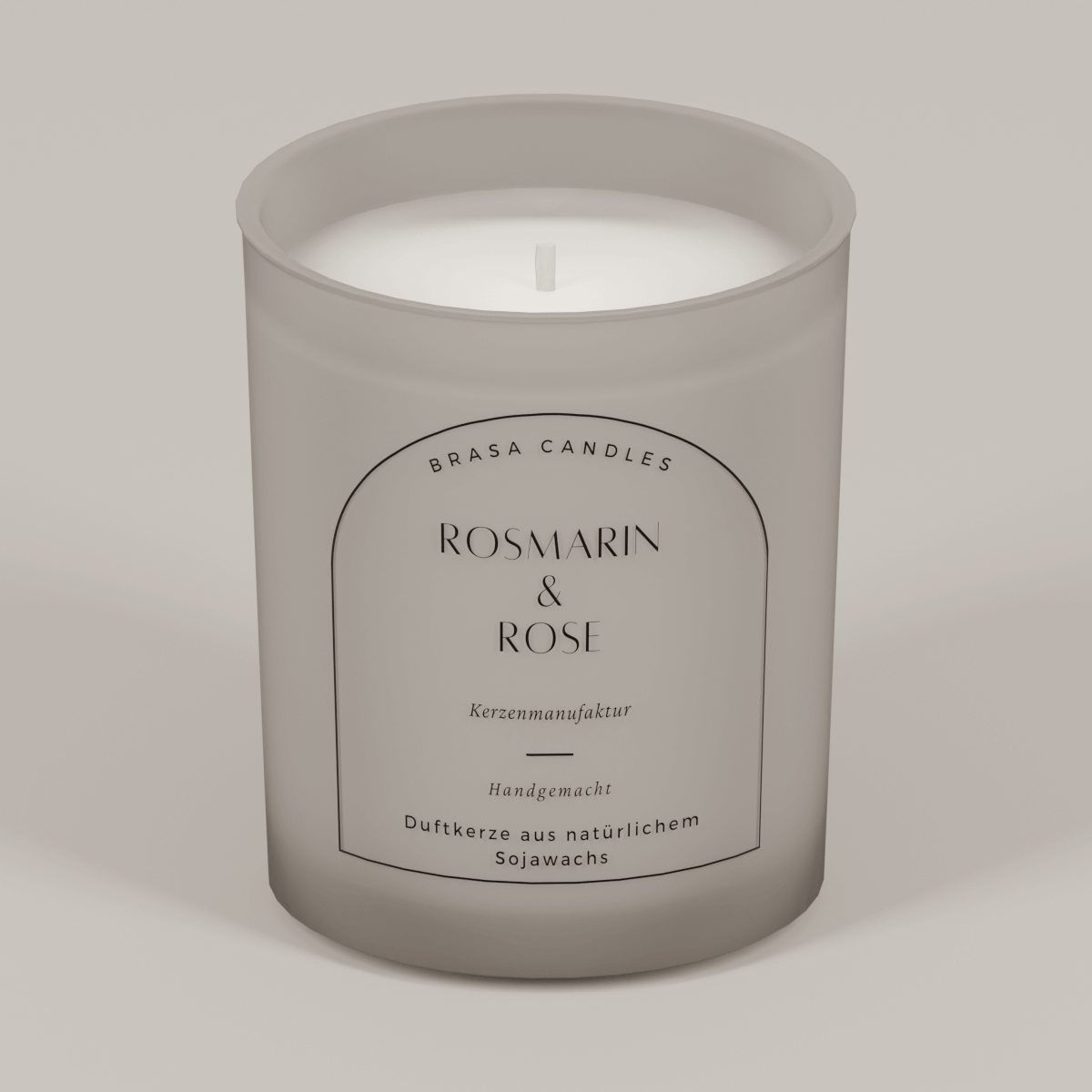 Produktbeschreibung: Sojawachskerze „Rosmarin & Rose“ im Glas 245 ml – Graumattes Design mit Bambusdeckel