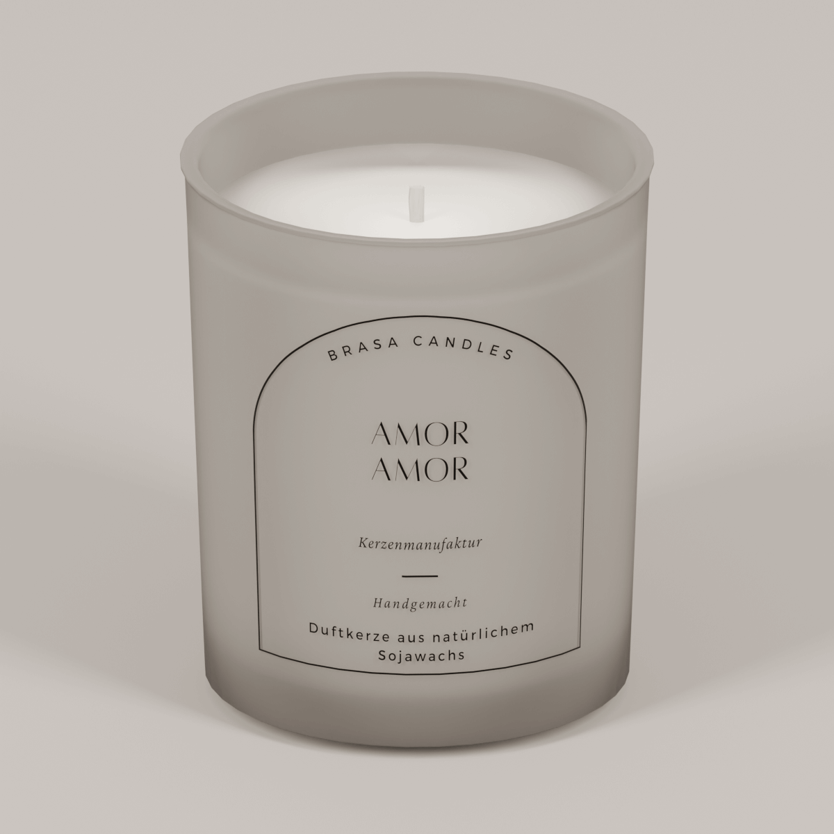 Produktbeschreibung: Sojawachskerze „Amor Amor“ im Glas 245 ml – Graumattes Design mit Bambusdeckel