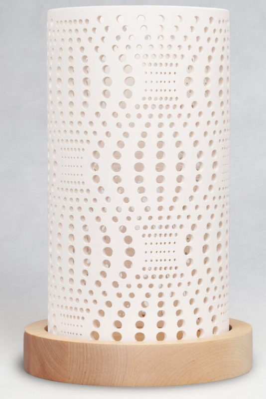 Die handgefertigte Keramiklampe mit Ajour-Design greift das rhythmische Spiel elektromagnetischer Wellen kosmischer Pulsare auf. Die präzise angeordneten Durchbrüche erinnern an pulsierende Energiemuster und erzeugen im eingeschalteten Zustand ein faszinierendes Lichtbild an Wand und Decke – atmosphärisch, geheimnisvoll und einzigartig.