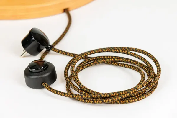 Diese außergewöhnliche Stehleuchte basiert auf der Idee einer klaren, funktionalen Lichtsäule – ein modernes Konzept, das sofort ins Auge fällt. Der Leuchtenkörper besteht aus einem durchbrochenen Buchenholzgestell mit fünf integrierten E14-Glühbirnen. Zehn dekorative Holzpaneele werden mithilfe von Magneten befestigt und formen eine stilvolle, variable Außenstruktur. Die runde Basis mit stoffummanteltem Kabel und praktischem Fußschalter rundet das Design ab und sorgt dafür, dass die Leuchte den Raum sowohl optisch bereichert als auch mit warmem, stimmungsvollem Licht erfüllt.
