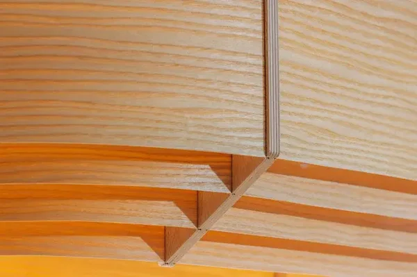 Gefertigt aus natürlichem Holz – Buchen-Sperrholz oder Esche – überzeugt die Leuchte durch ihre hochwertige Materialität und zeitlose Ästhetik. Da es sich um ein Naturmaterial handelt, kann sich der Farbton im Laufe der Zeit leicht verändern. Um die Schönheit des Holzes zu bewahren, sollte die Leuchte vor starken Feuchtigkeitsschwankungen und direkter Sonneneinstrahlung geschützt werden.